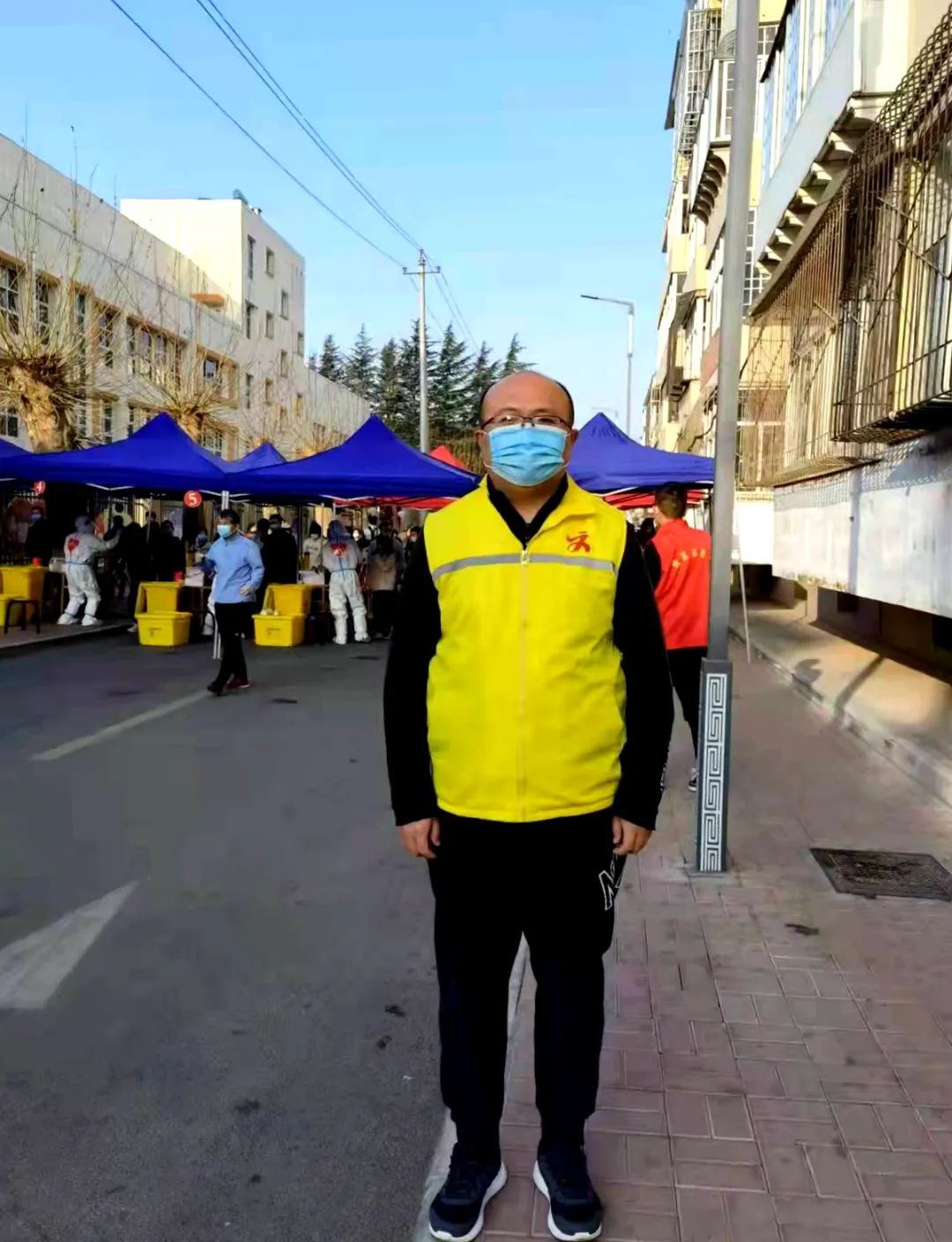 “请大家遵守防疫规定,注意保持1米间隔。”“请大家戴好口罩,快速有序离开,谢谢配合。”简单的几句话,他一天不知道会重复多少遍。5天配合完成4次核酸检测,每天维持5000余人次的检测秩序,他用实际行动践行了一名共产党员的初心。