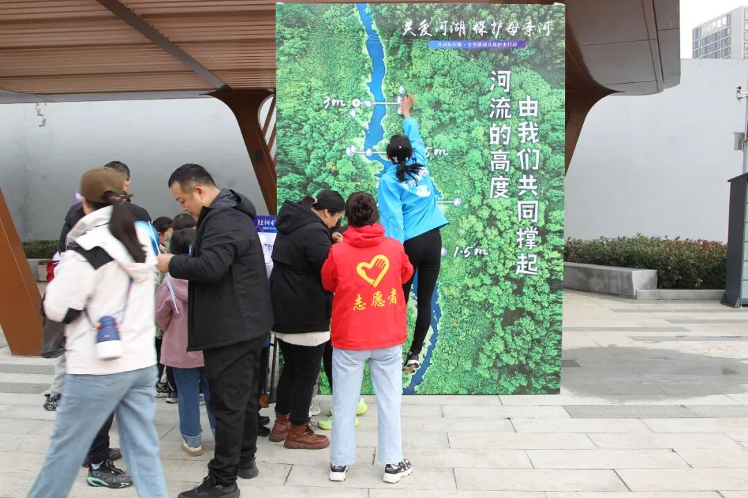 在“点滴小事,汇聚幸福河湖”打卡点,8名市民组成的临时小组通过协作完成指尖“河流游览”挑战。“这个游戏让我们感受到,保护河流就像传球一样,需要大家齐心协力,任何一个环节掉链子都不行。”市民王女士带着孩子反复尝试后成功通关,她表示这样的互动体验能让孩子直观理解“团结护水”的意义。而在“跟河流比身高”点位,大家跳跃伸手,在触摸“河流最高点”的同时贴上水滴形状的祝福贴纸,“愿家乡河水长清”“守护母亲河,我们在一起”成为大家共同的心声。
