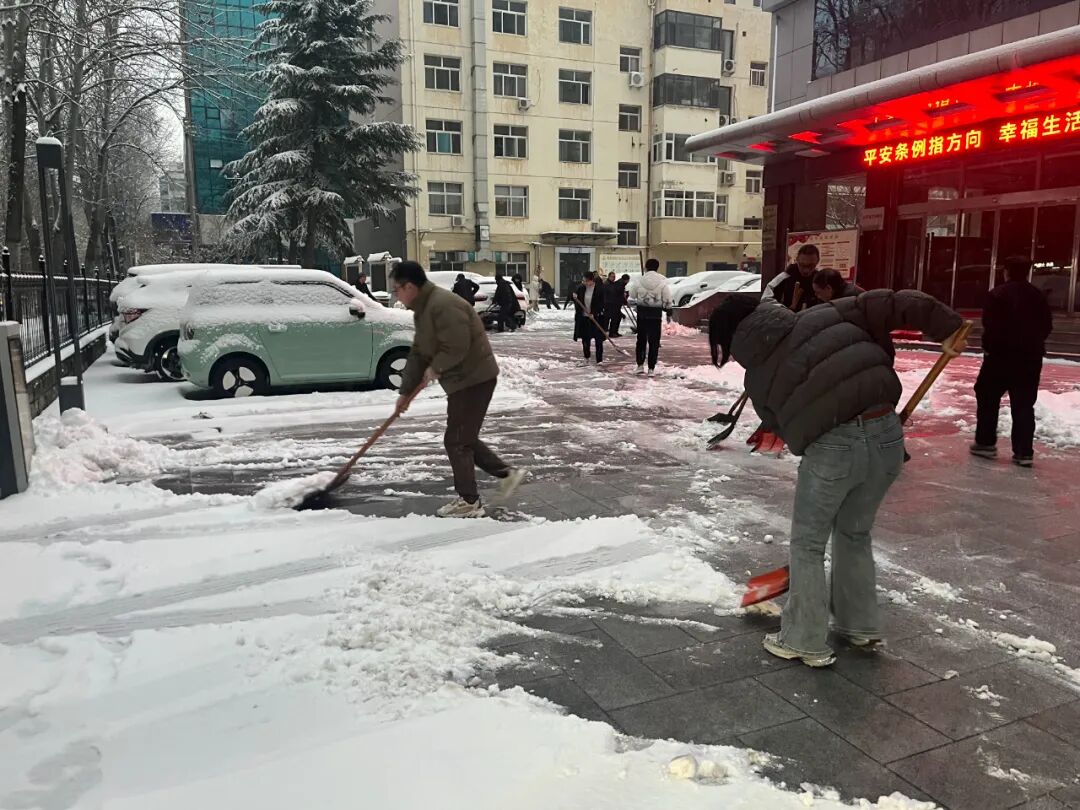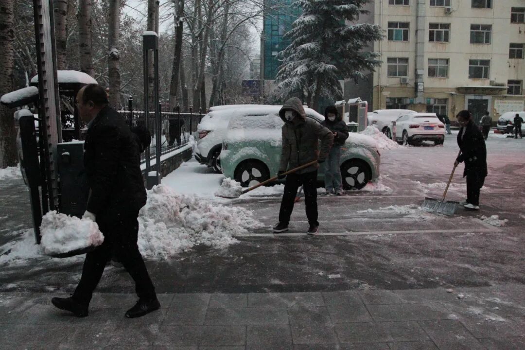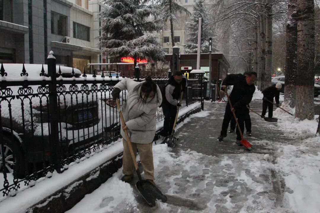 大家不畏严寒,齐心协力,干劲十足,用铲子、铁锹等工具,对单位门前和凤翔小区口等道路的积雪进行认真清理,忙碌的身影构成了冬日里一道亮丽的风景线。